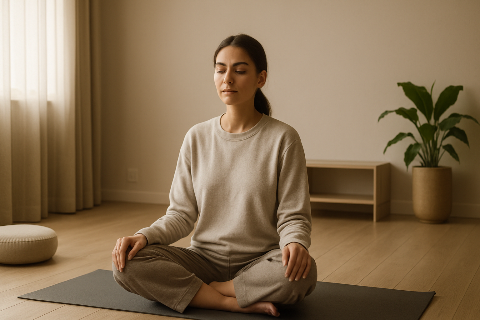 - نشستن روی زمین یا مت یوگا و تمرکز بر تنفس
